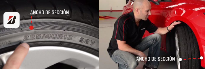 En este ejemplo el número es 225, eso quiere decir que su ancho de sección es 225 milímetros o 22.5 centímetros.